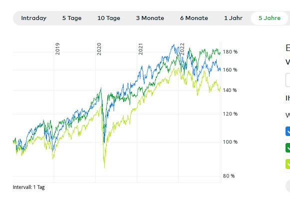 Mein Stil ist es nicht, einzelne Aktien zu kaufen. Deshalb habe ich ein strukturiertes Portfolio mit ETFs. Besonderheit gegenüber den Standard-Prtfolios > Gold statt Anleihen und Beimischung von Rohstoff-ETFs. Das zieht keinen Hering vom Teller, liefert aber langfristig ein ordentliches Ergebnis – sogar in 2022.