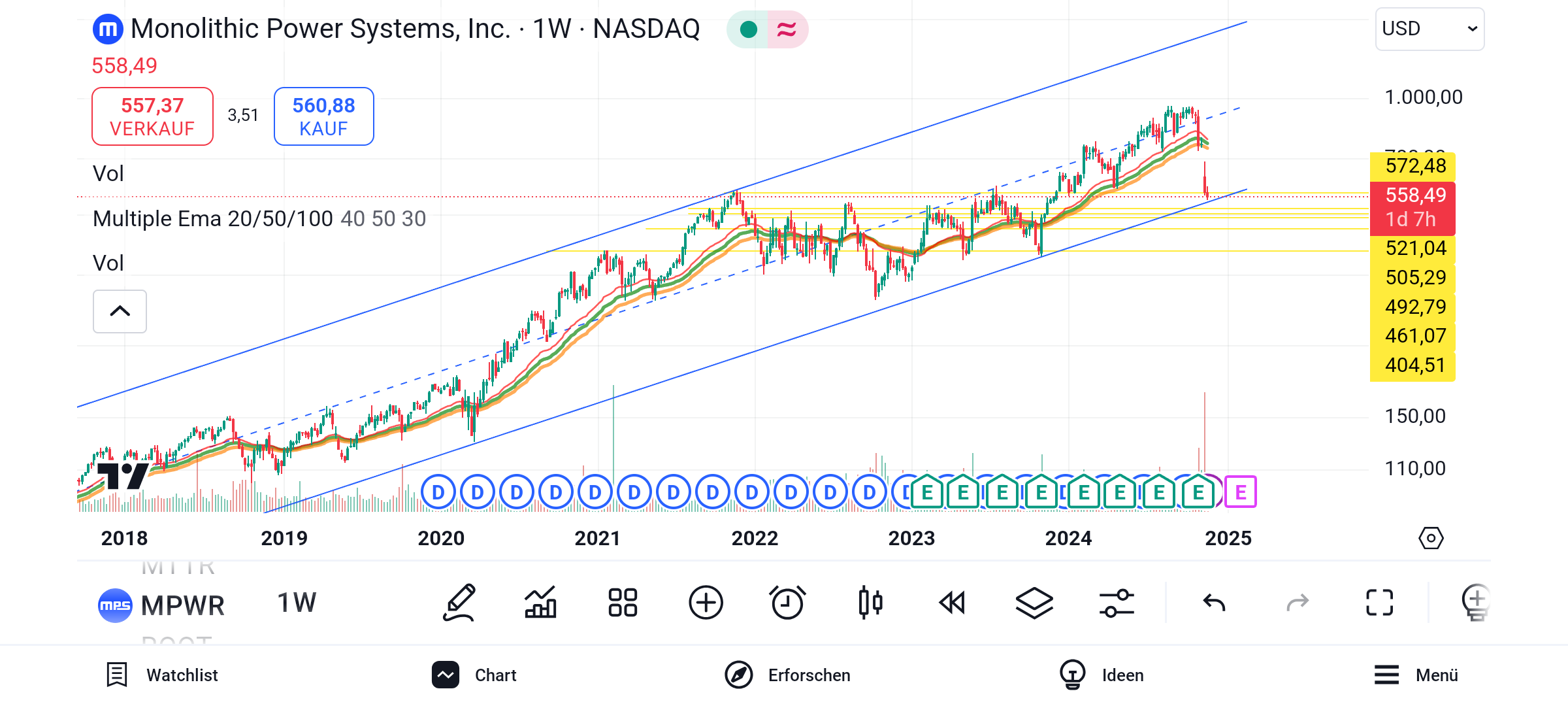 2. Technologiesektor-Korrektur: Die Aktie war auch Teil einer allgemeinen Schwächephase im Technologiesektor, der unter makroökonomischen Unsicherheiten und einer Abkühlung der Nachfrage leidet. Das betraf besonders Unternehmen, die wie Monolithic Power Systems im Halbleiterbereich tätig sind