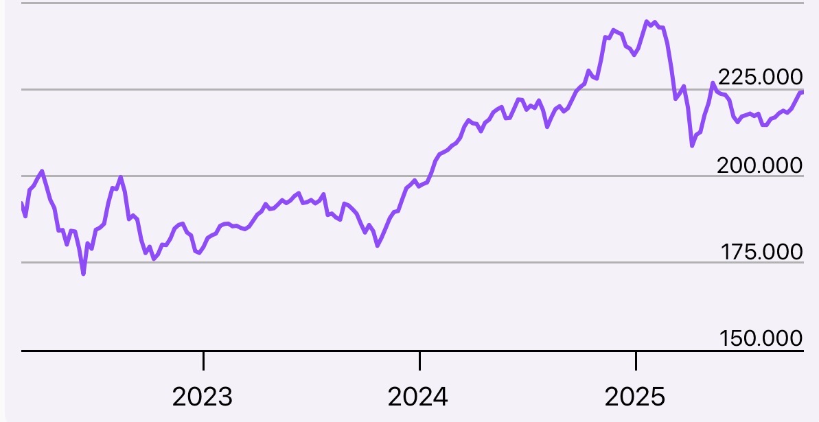 So oder so sollte man die Quartalszahlen am 29.10.25 abwarten. Entweder es gibt dann einen weiteren Abverkauf oder eine Art turnaround. Vor diesen Zahlen zu verkaufen, macht vermutlich wenig Sinn. Aber die 5 Jahresperformance ist auch nicht mehr so berauschend.
