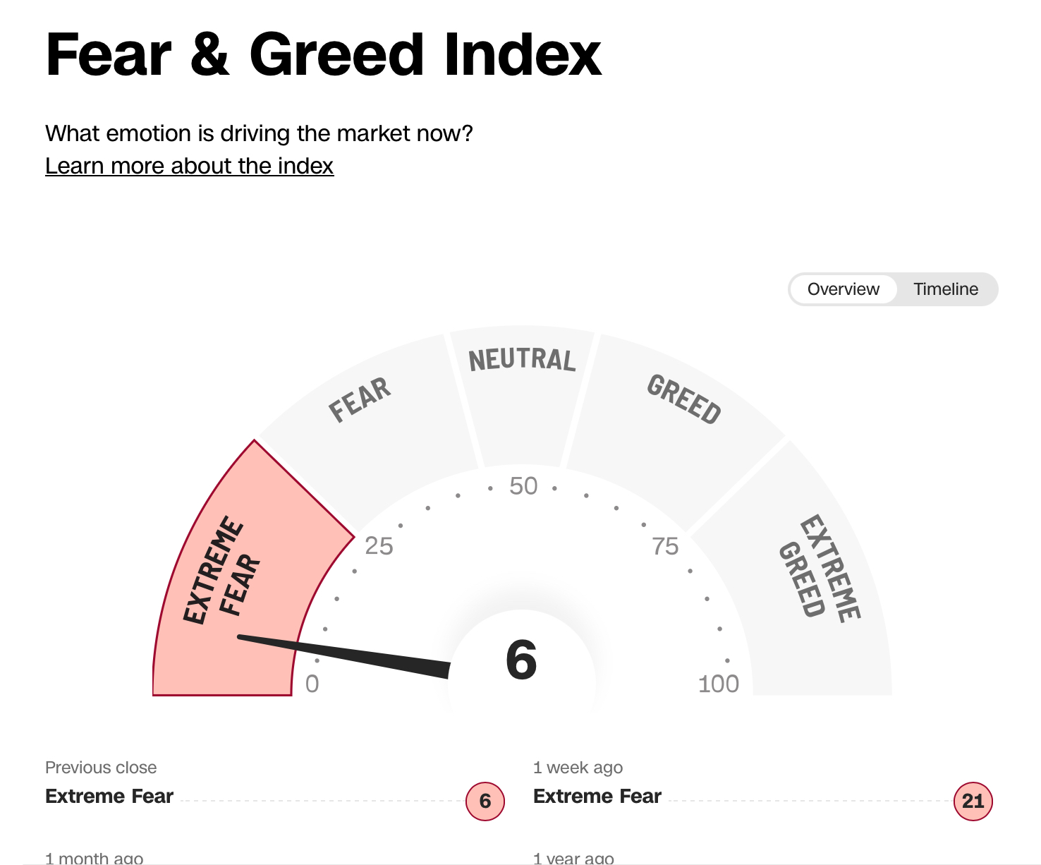 Fear und Gread bei 8 , da dürfte der Wendepunkt nach oben nicht mehr weit sein . Der Dax hat seine 200 Tage Linie nach unten touchiert , beim Nasdaq 100 reduziert sich der Abstand zur 200 Tage Linie signifikant .