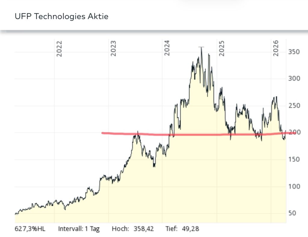 … deshalb haben wir heute zwei Positionen aufgestockt: 15 weitere Microsoft Aktien und 11 von UFP Technologies. Geld kam aus der Kasse.