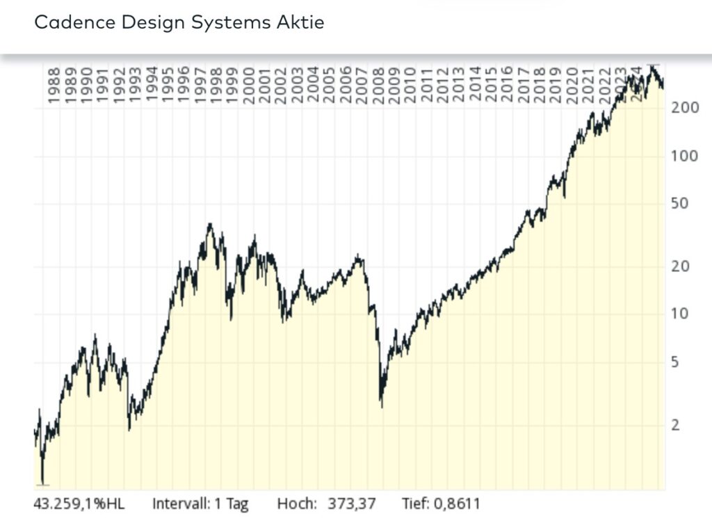 Die sind mit 2 anderen ( Synopsys und Siemens eda) führend in der Entwicklung einer Software zur Herstellung von Halbleitern Design. Auch im entsprechen Nachbereich wie dazugehörigen Service sind sie mit den 2 anderen führenden und natürlich durch langfristige Verträge sehr gut in der langfristigen Gewinnerzielung gut aufgestellt. Obwohl es eine Software Aktie ist ging der Software Abverkauf relativ geräuschlos an Ihnen vorbei.Es wurde auch im 1 Jahreschart ein doppelter Boden ausgebildet .Obwohl sie hoch bewertet ist sind anscheinend viele Anleger der Meinung das die Bewertung der Aktie durch das sehr hohe und sehr profitable Wachstum in einer Zukuftsbranche berechtigt ist.